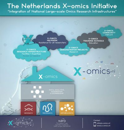 X-omics aims to establish a X-omics research infrastructure across the Netherlands, by combining technologies in the field of genomics, proteomics, metabolomics and data analysis, integration & stewardship. With this infrastructure biomedical problems can be solved using an integrated approach (analysis of samples using the available omics technologies of the infrastructure).